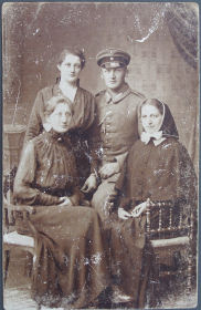 vor dem Fenster links Herta, im Fenster Mutter Maria), rechts der sogenannte